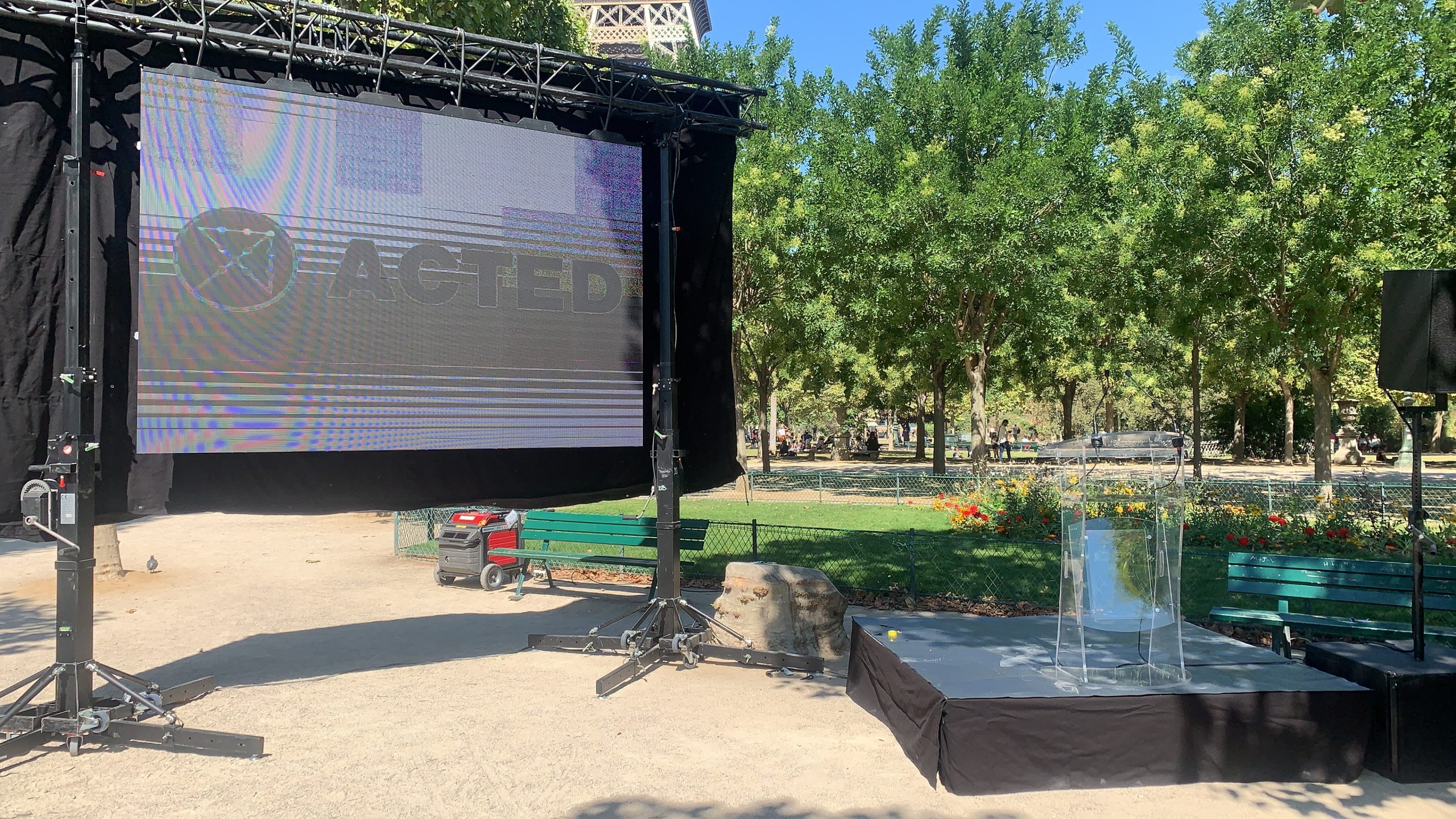 Nous nous adaptons aux contraintes techniques du terrain : accès, alimentation, météo, distance de diffusion, sécurité du public.